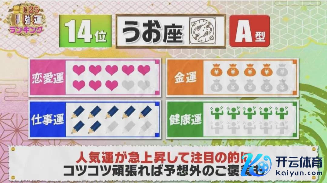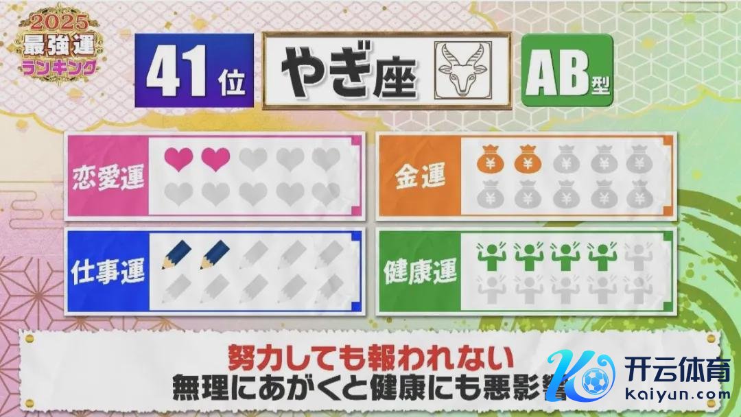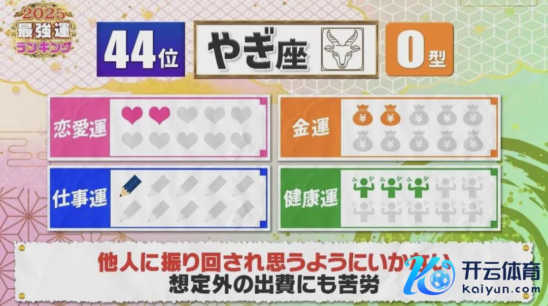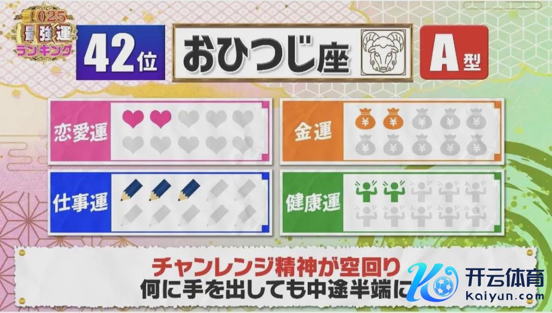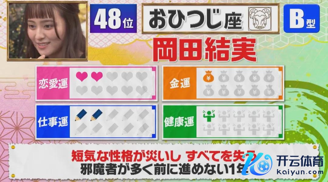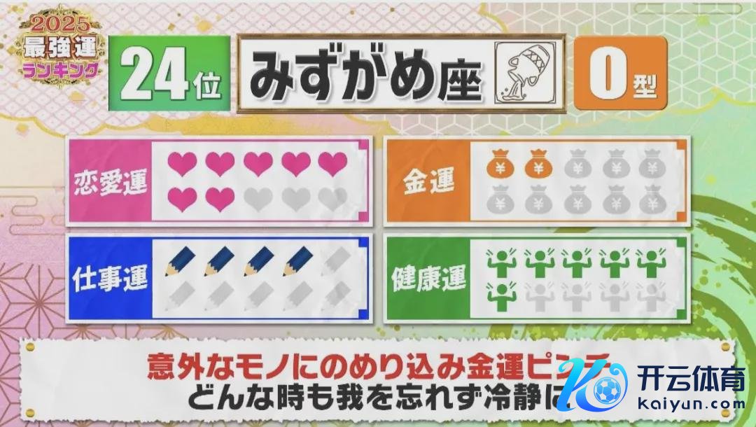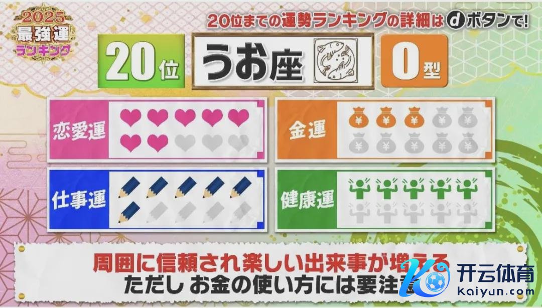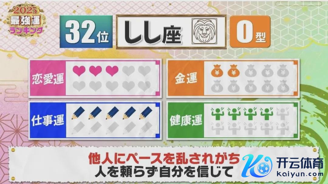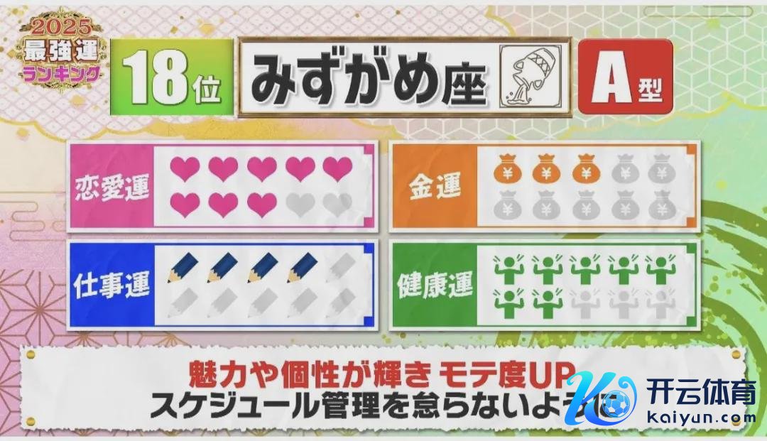 日本东谈主气综艺『ダウンタウンDX』,每年皆会邀请着名占卜师水晶玉子,劝诱星座和血型,从恋爱运、财气、使命运和健康运四个方面作念个大起底,排出1-48名的新年运势榜单。