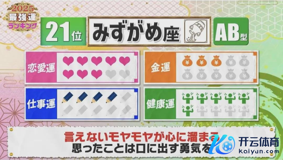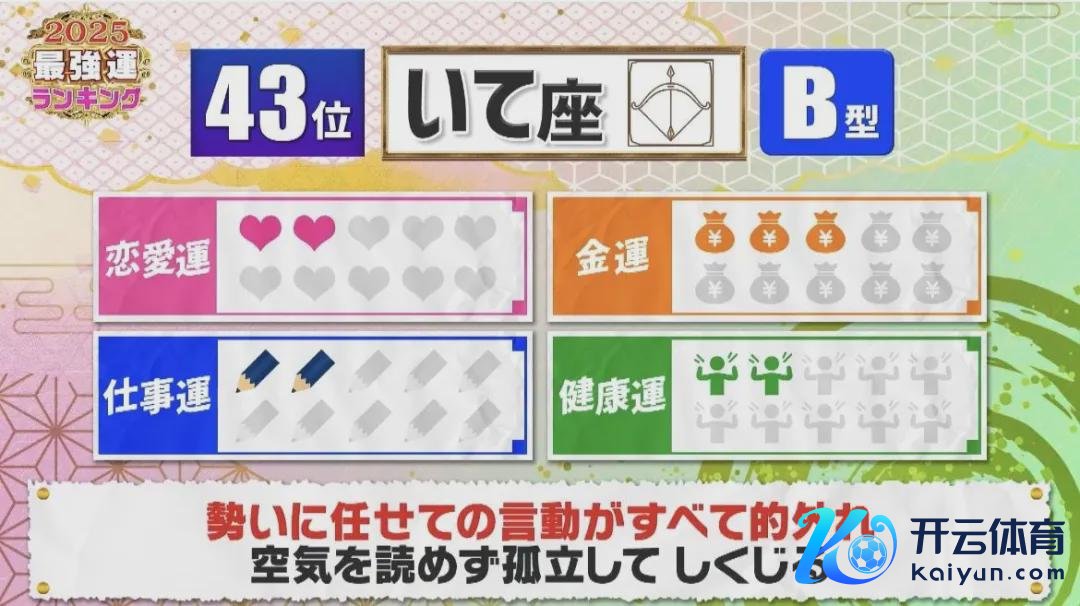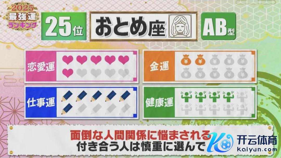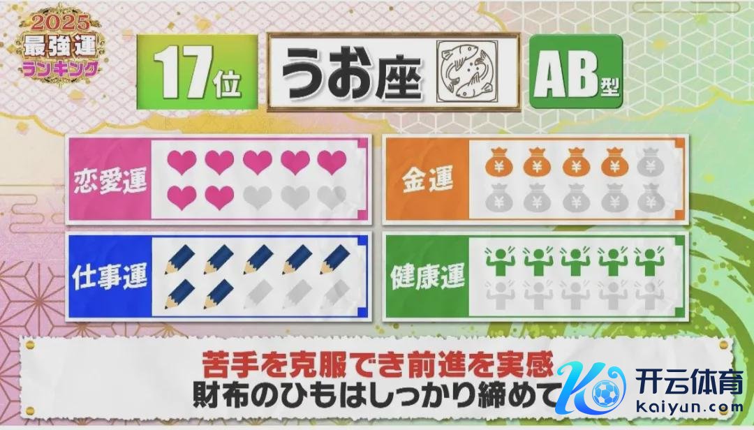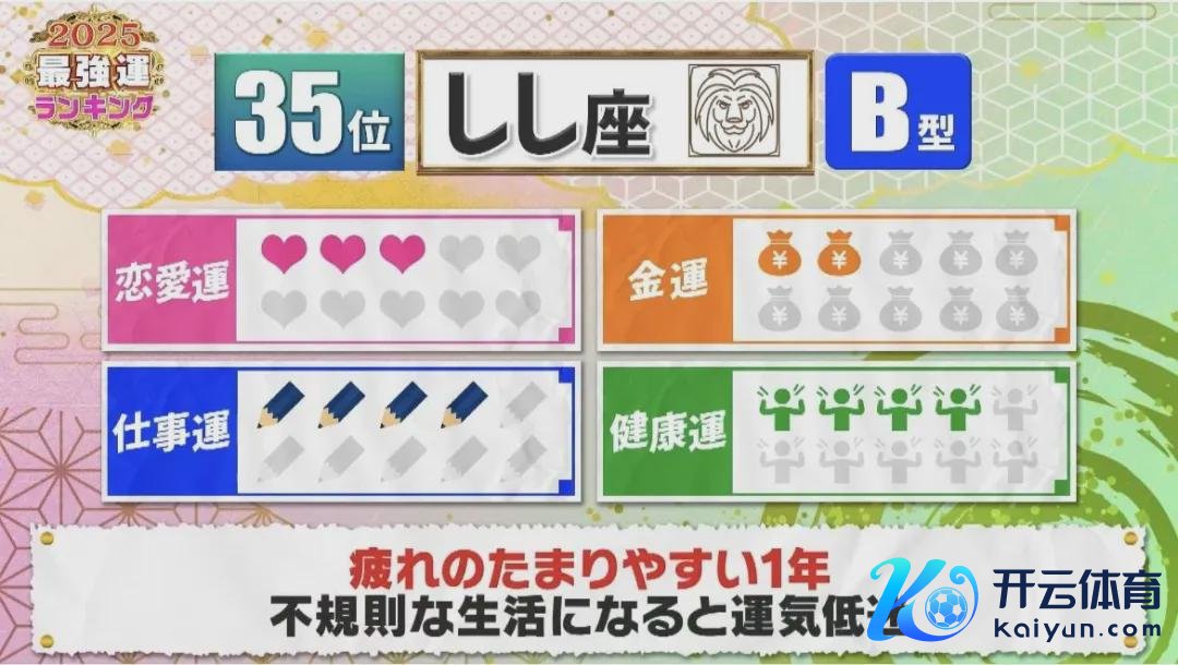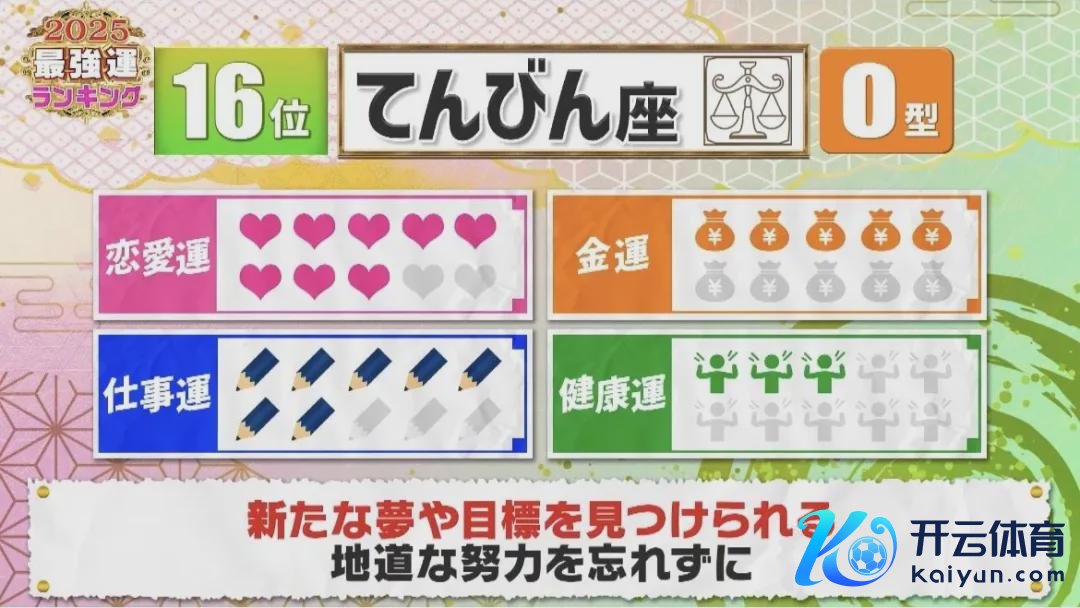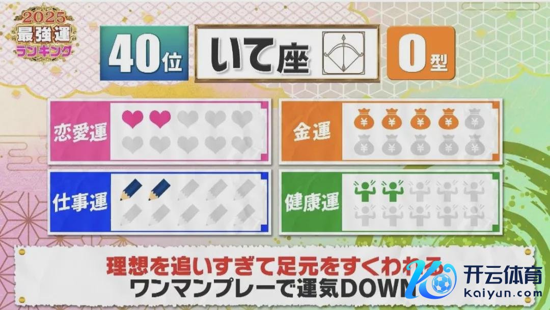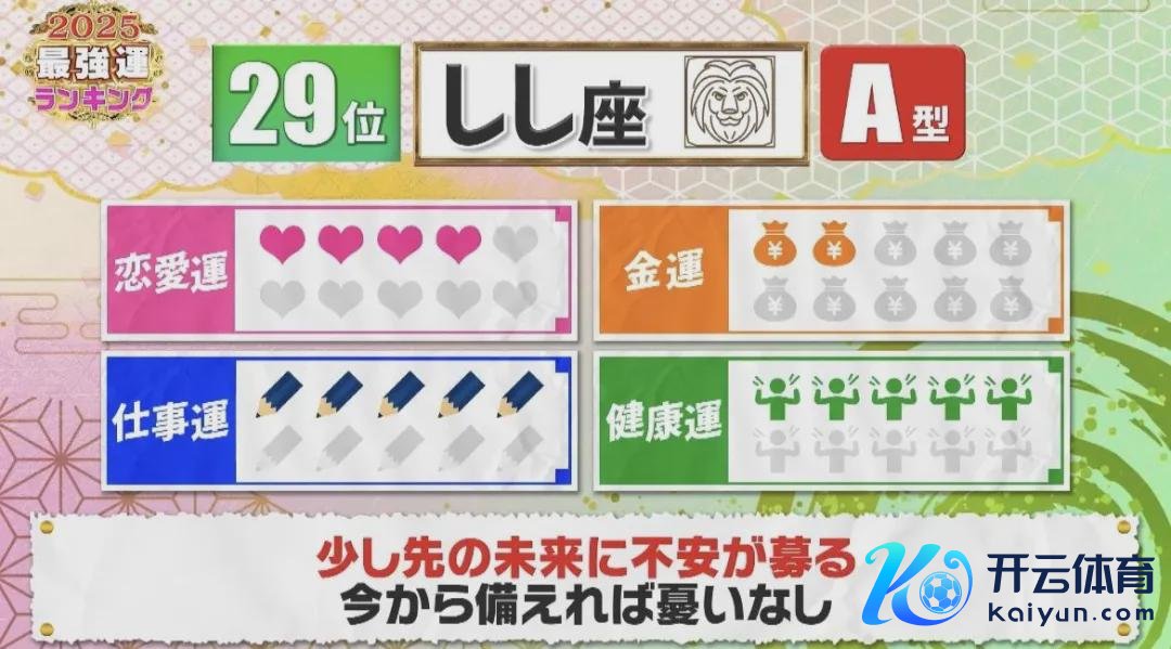 日本东谈主气综艺『ダウンタウンDX』,每年皆会邀请着名占卜师水晶玉子,劝诱星座和血型,从恋爱运、财气、使命运和健康运四个方面作念个大起底,排出1-48名的新年运势榜单。
