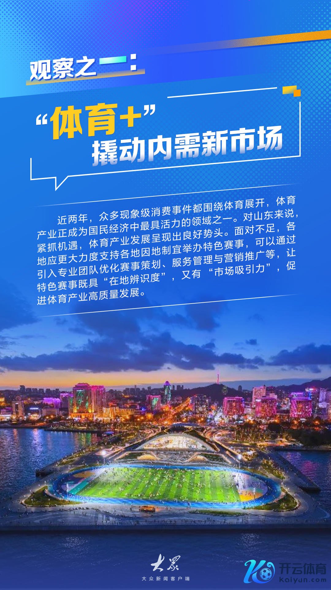 近两年,繁密气象级花消事件都围绕体育张开,体育产业正成为国民经济中最具活力的领域之一。对山东来说,紧执机遇,体育产业发展呈现出雅致势头。面对不及,各地应更鼎力度维持各地因地制宜举办特点赛事,不错通过引入专科团队优化赛事筹备、处事料理与营销履行等,让特点赛事既具“在地辨识度”,又有 “市集诱惑力”,促进体育产业高质料发展。