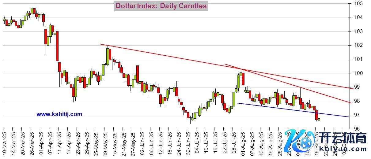 在阛阓巨额展望的好意思联储降息25个基点之前,好意思元指数大幅下落至96.58;可能很快会测试96的援救位,除非决定性的跌破96,不然可能反弹向98。