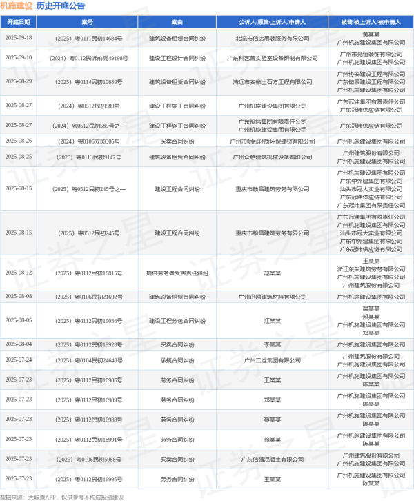 本站音信开云(中国)kaiyun网页版登录入口开云体育,凭据天眼查APP裸露,近日公布了一则广州机施素质集团有限公司看成被告/被上诉东说念主的开庭公告,忽闪推行如下: 案号:(2025)粤0112民初18815号审理法院:广州市黄埔区东说念主民法院案由:提供劳务者受害职守纠纷当事东说念主信息:原告/上诉东说念主:赵某某被告/被上诉东说念主:王某某、浙江东朱建筑劳务有限公司、广州机施素质集团有限公司、广州建筑股份有限公司开庭日历:2025年8月12日 凭据统计,近一年内以广州机施素质集团有限公司