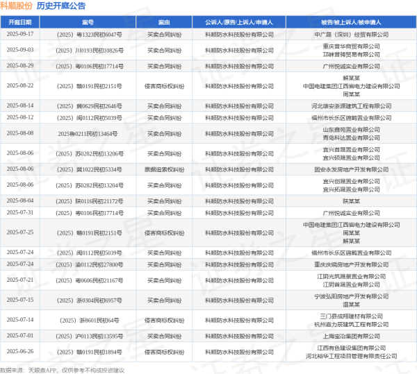 本站音书开云体育(中国)官方网站,字据天眼查APP泄漏,近日公布了一则科顺防水科技股份有限公司行为原告/上诉东谈主的开庭公告,闪耀推行如下: 案号:(2025)闽0112民初5039号审理法院:福州市长乐区东谈主民法院案由:营业协议纠纷当事东谈主信息:原告/上诉东谈主:科顺防水科技股份有限公司被告/被上诉东谈主:福州市长乐区锦鹤置业有限公司开庭日历:2025年8月12日 字据统计,近一年内以科顺防水科技股份有限公司为当事东谈主的历史开庭公告有179则,其中案由为“营业协议纠纷”的公告以107则