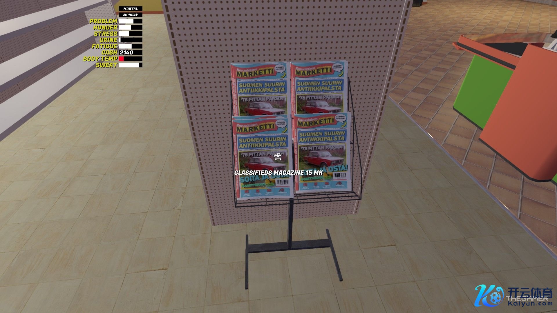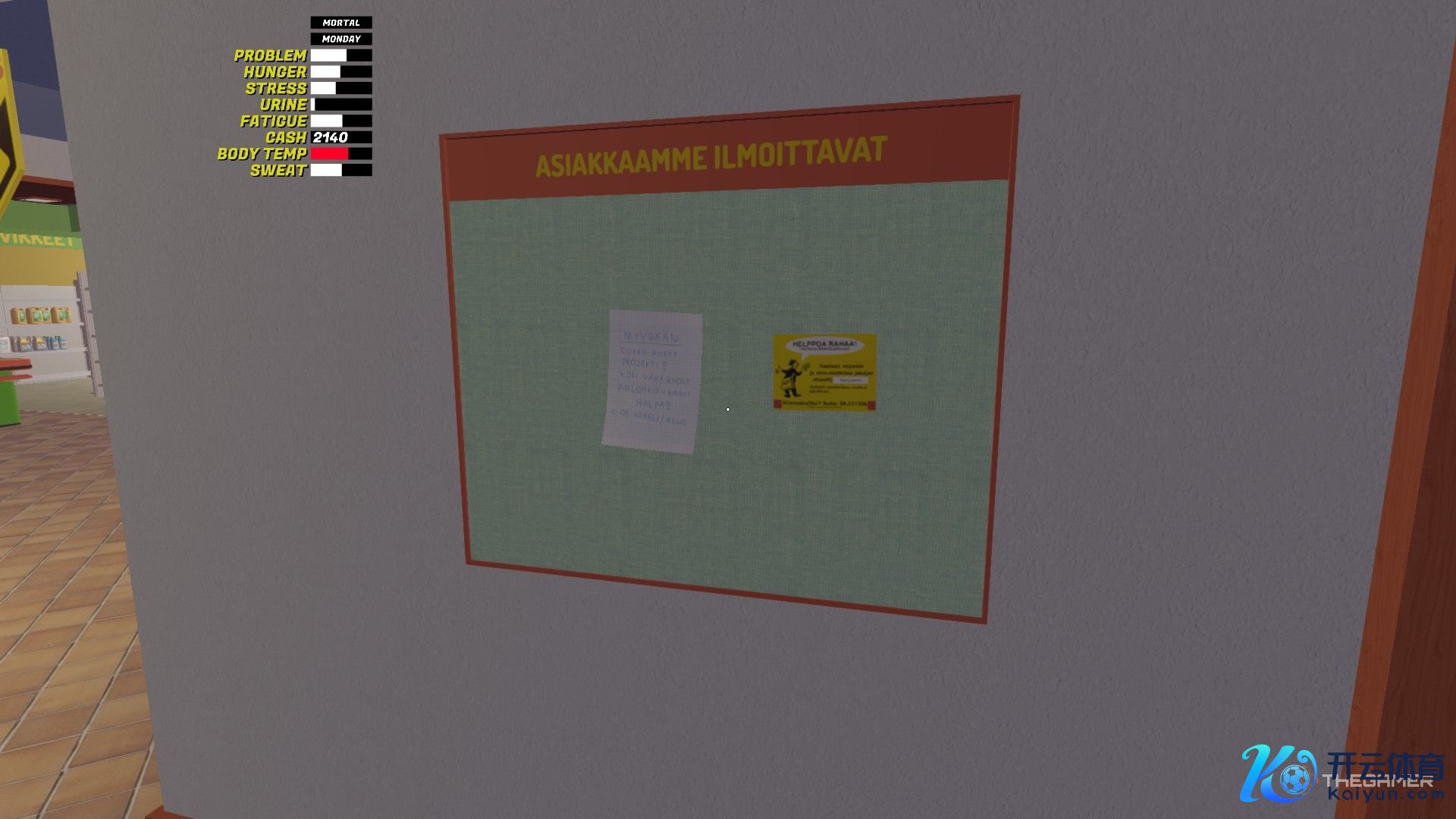 从电话旁拿上你的夹克并穿上它,准备外出。 学习若何启动你的第一辆车。 去 PSK 激活你的信用卡。 买两箱啤酒和一些食品放在家里。 记载下这里的号码。 从 Reijo 那里购买 Corris Rivett。 在镇上转转入手熟识它(并体验在雪地上驾驶)。 在回家前给车加满油。