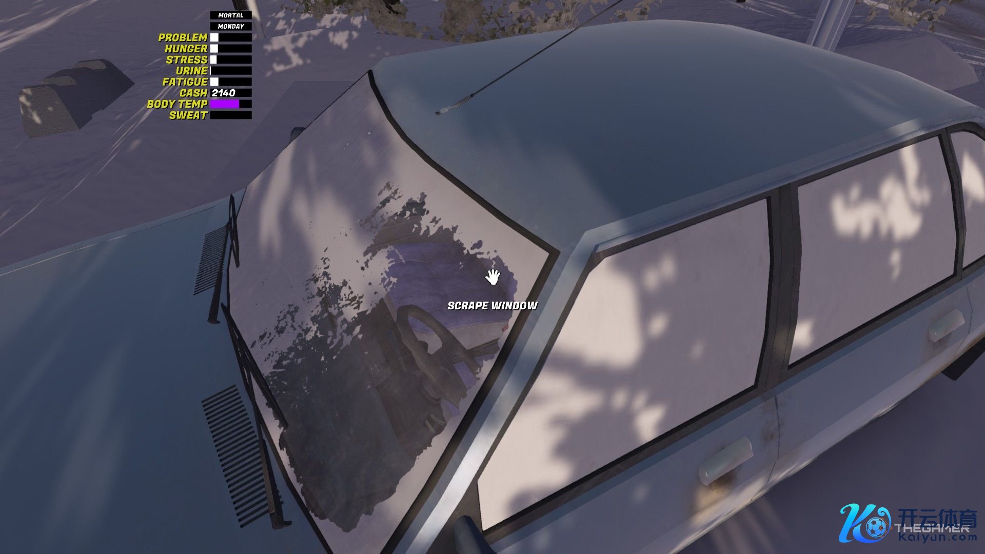 走落发门,你会看到停着的车。走到车头,蹲下,拔掉通顺在车上的斥地:这是一个严防车辆冻结的加热器。接下来,你不错通过点击左键并屡次傍边移动鼠标来刮掉车窗上的冰雪,大约使用汽车的加热系统。